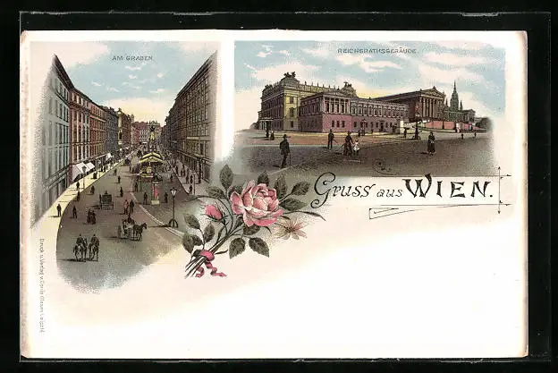Lithographie Wien, Am Graben, Reichsrathsgebäude