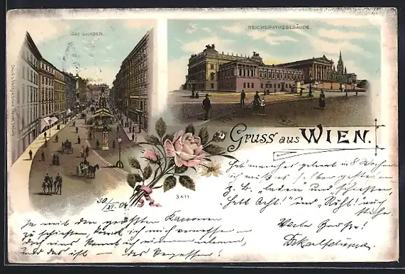 Lithographie Wien, Am Graben, Reichsratsgebäude