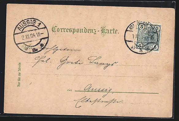 Personenbezogene Daten auf der Rückseite der Karte wurden durch blauen Textmarker unkenntlich gemacht. Die blauen Stellen sind auf die Vorderseite durchgeweicht und wirken sich negativ auf das Postkartenfoto aus