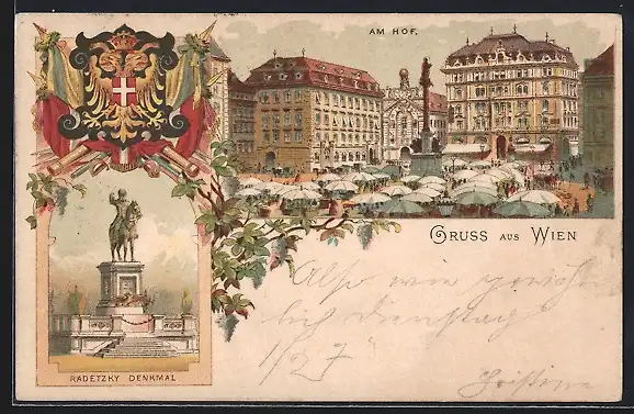 Lithographie Wien, Am Hof, Radetzky Denkmal