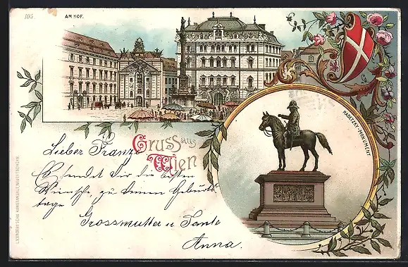 Lithographie Wien, Am Hof, Radetzky-Monument