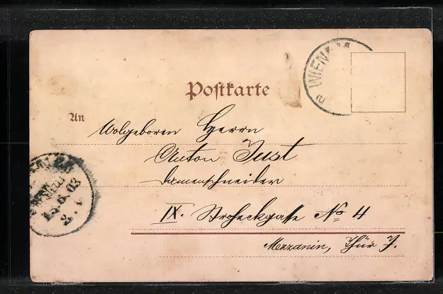gelaufen 1903, Briefmarke entfernt, rückseitig Klebe- und Papierreste, rückseitig Oberflächenschaden, guter Zustand