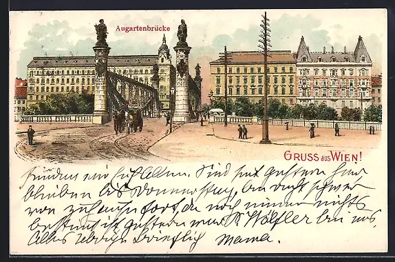 Lithographie Wien, Augartenbrücke, Strassenpartie
