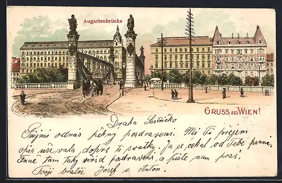 Lithographie Wien, Augartenbrücke mit Denkmal