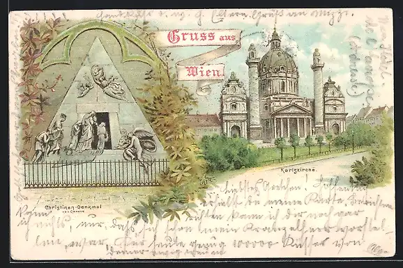 Lithographie Wien, Christinen-Denkmal und Karlskirche