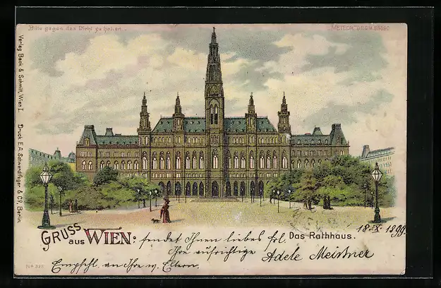 Lithographie Wien, Das Rathaus, Halt gegen das Licht