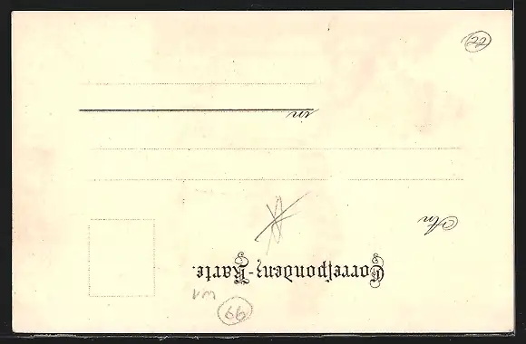 Personenbezogene Daten auf der Rückseite der Karte wurden durch blauen Textmarker unkenntlich gemacht. Die blauen Stellen sind auf die Vorderseite durchgeweicht und wirken sich negativ auf das Postkartenfoto aus