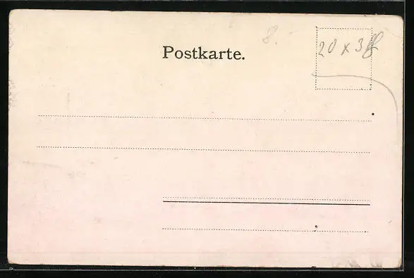 Personenbezogene Daten auf der Rückseite der Karte wurden durch blauen Textmarker unkenntlich gemacht. Die blauen Stellen sind auf die Vorderseite durchgeweicht und wirken sich negativ auf das Postkartenfoto aus