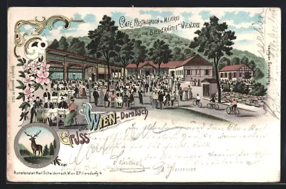 Lithographie Wien-Dornbach, Café Restauration u. Meierei zur Bieglerhütte
