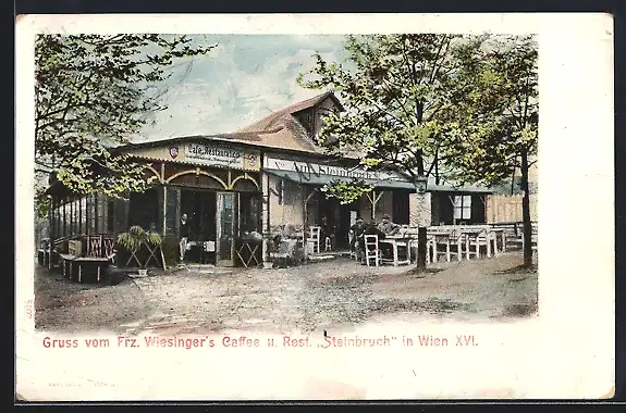 Lithographie Wien, Frz. Wiessinger`s Cafe und Restaurant Steinbruch