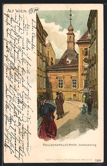 Lithographie Wien, Heiligenkreuzerhof, Schönlaterng.