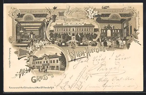 Lithographie Wien, Hietzing, Hotel Hietzinger Hof, Café, Wohnhaus