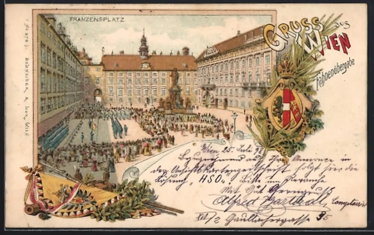 Lithographie Wien, Hofburg, Franzensplatz, Wappen