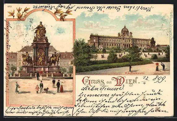 Lithographie Wien, K. k. Museum und Maria-Theresien-Denkmal