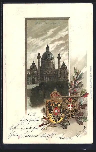 Lithographie Wien, Karlskirche, Stadtwappen