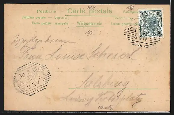 gelaufen 1903, Eckknicke oben, guter Zustand