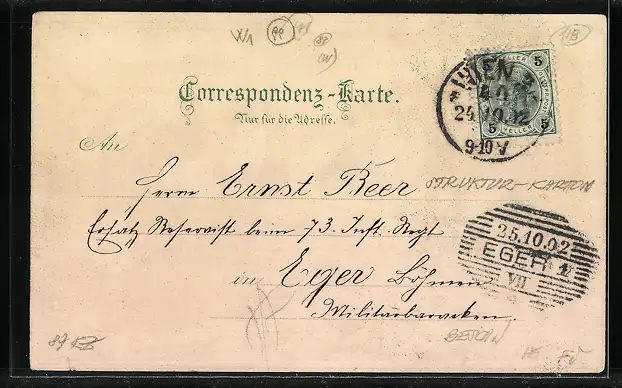 gelaufen 1902, Eckknick u. Einriss re. unten, Verleimung gelöst Ecke li. oben, guter Zustand