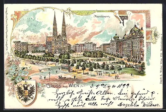 Lithographie Wien, Maximilianplatz mit Votivkirche
