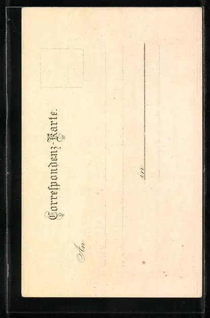 Personenbezogene Daten auf der Rückseite der Karte wurden durch blauen Textmarker unkenntlich gemacht. Die blauen Stellen sind auf die Vorderseite durchgeweicht und wirken sich negativ auf das Postkartenfoto aus
