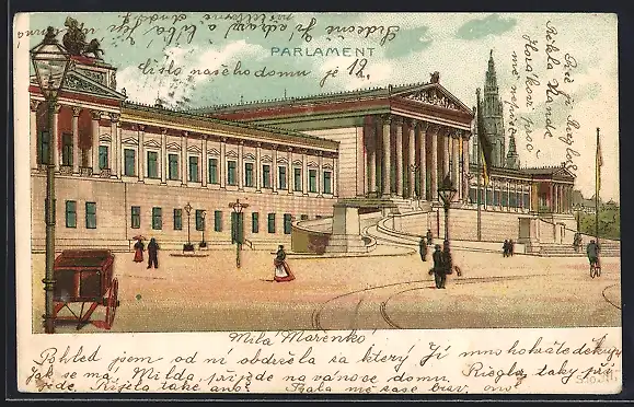 Lithographie Wien, Parlament mit Vorplatz