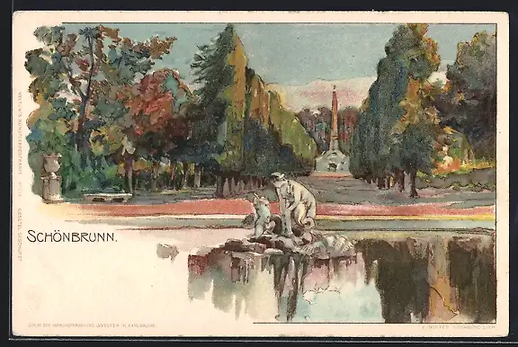 Lithographie Wien, Partie im Park von Schönbrunn