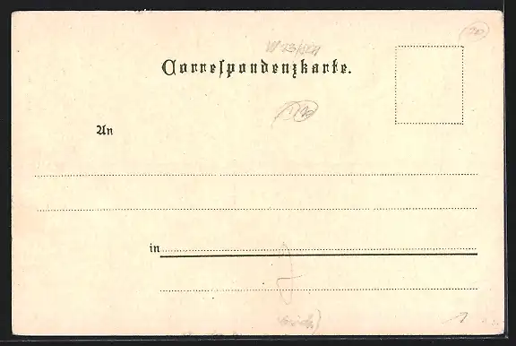 Personenbezogene Daten auf der Rückseite der Karte wurden durch blauen Textmarker unkenntlich gemacht. Die blauen Stellen sind auf die Vorderseite durchgeweicht und wirken sich negativ auf das Postkartenfoto aus