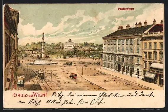 Lithographie Wien, Praterstern und Tegetthoff-Denkmal