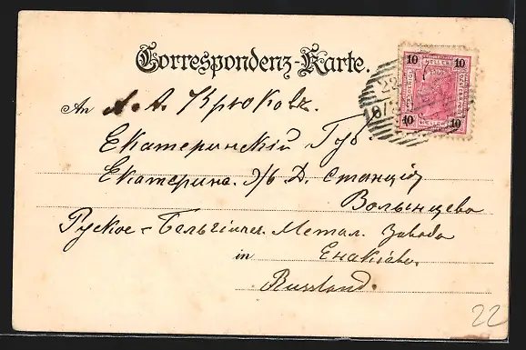Personenbezogene Daten auf der Rückseite der Karte wurden durch blauen Textmarker unkenntlich gemacht. Die blauen Stellen sind auf die Vorderseite durchgeweicht und wirken sich negativ auf das Postkartenfoto aus