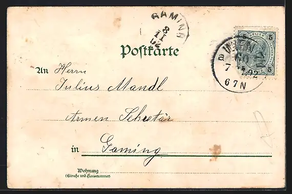 gelaufen 1902, Eckknick unten li., Stempelspur, guter Zustand
