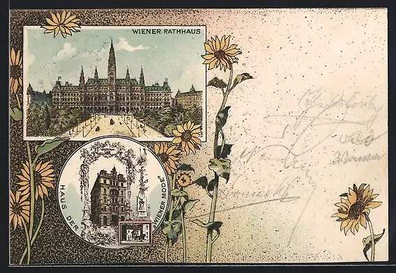 Lithographie Wien, Rathaus und Haus der Wiener Mode