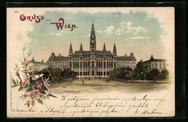 Lithographie Wien, Rathhaus mit Vorplatz, Wappen