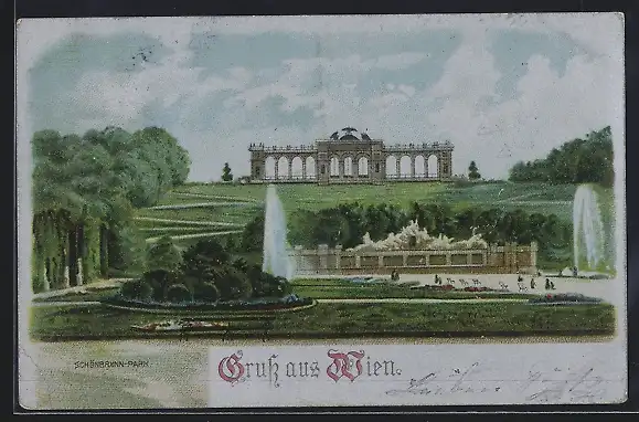 Lithographie Wien, Schönbrunn-Park, Springbrunnen