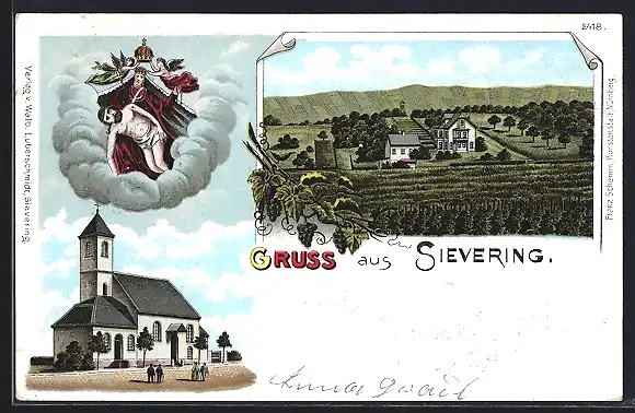 Lithographie Wien-Sievering, Ortsansicht, Kirche, Gnadenbild