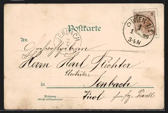 gelaufen 1899, Eckknick li. unten, guter Zustand