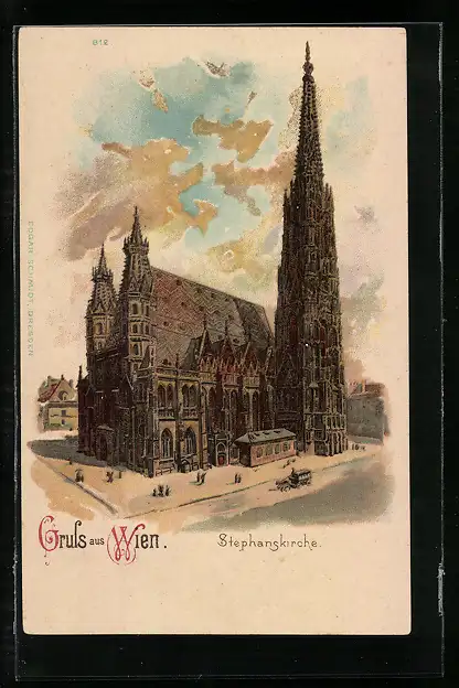 Lithographie Wien, Strassenpartie an der Stephanskirche