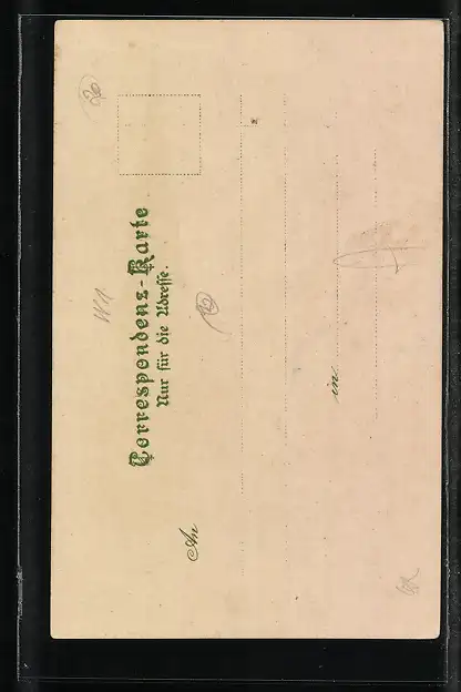 Personenbezogene Daten auf der Rückseite der Karte wurden durch blauen Textmarker unkenntlich gemacht. Die blauen Stellen sind auf die Vorderseite durchgeweicht und wirken sich negativ auf das Postkartenfoto aus