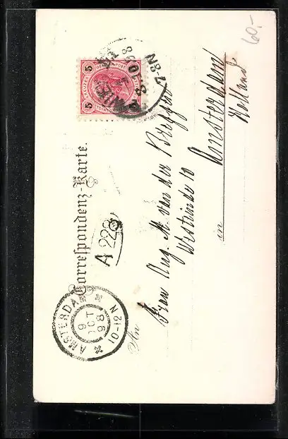 Personenbezogene Daten auf der Rückseite der Karte wurden durch blauen Textmarker unkenntlich gemacht. Die blauen Stellen sind auf die Vorderseite durchgeweicht und wirken sich negativ auf das Postkartenfoto aus
