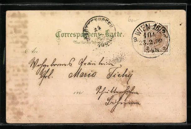 gelaufen 1899, Eckknick rechts unten, guter Zustand