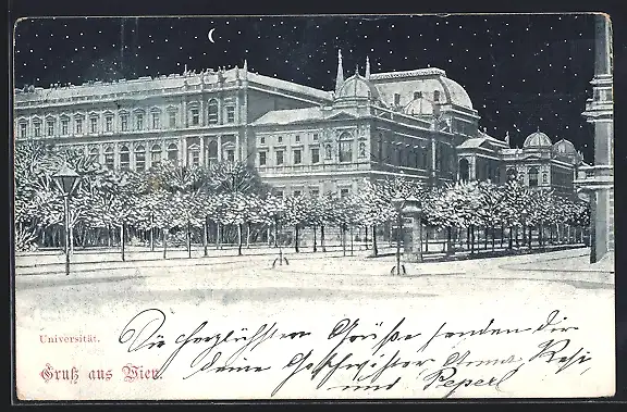 Lithographie Wien, Universität in einer Winter-Nacht