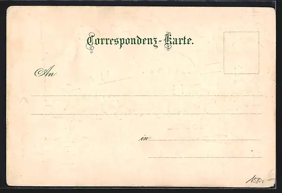 Personenbezogene Daten auf der Rückseite der Karte wurden durch blauen Textmarker unkenntlich gemacht. Die blauen Stellen sind auf die Vorderseite durchgeweicht und wirken sich negativ auf das Postkartenfoto aus