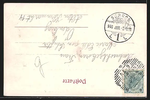 gelaufen 1903, Eckknicke oben, guter Zustand
