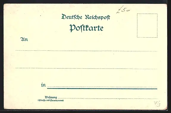 Personenbezogene Daten auf der Rückseite der Karte wurden durch blauen Textmarker unkenntlich gemacht. Die blauen Stellen sind auf die Vorderseite durchgeweicht und wirken sich negativ auf das Postkartenfoto aus