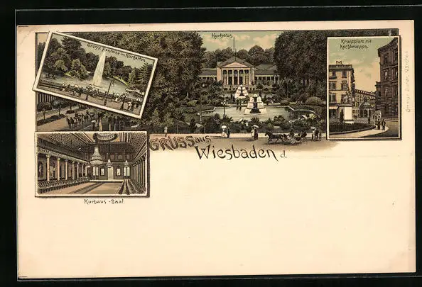 Lithographie Wiesbaden, Kurhaus mit Kranzplatz
