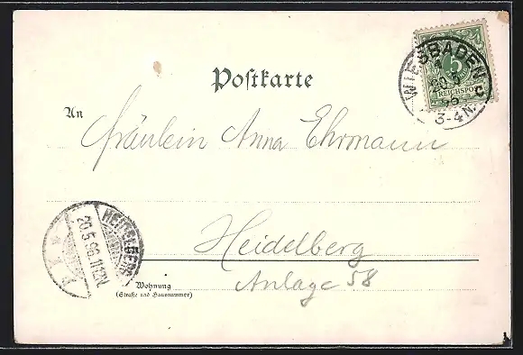 gelaufen 1896, minimale Einrisse li. oben u. unten, rückseitig Oberflächenschaden, minimaler Eckschaden li. unten, guter Zustand