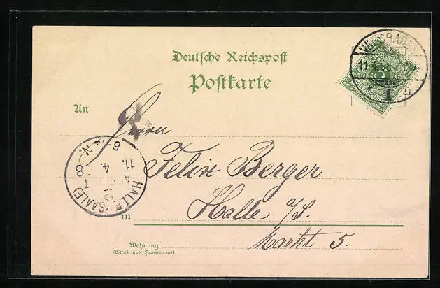 Personenbezogene Daten auf der Rückseite der Karte wurden durch blauen Textmarker unkenntlich gemacht. Die blauen Stellen sind auf die Vorderseite durchgeweicht und wirken sich negativ auf das Postkartenfoto aus