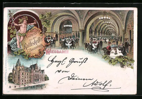 Lithographie Wiesbaden, Restaurant Rathskeller, Innenansicht