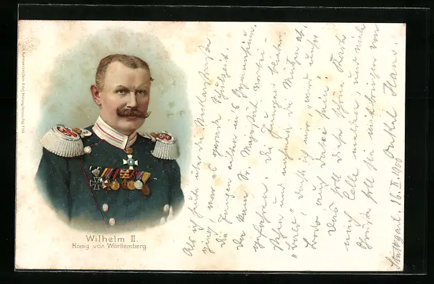 Lithographie Wilhelm II., König von Württemberg, Portrait in Uniform mit Orden