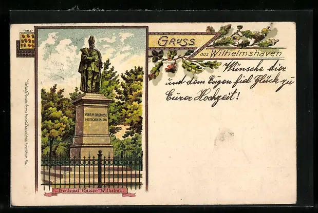Lithographie Wilhelmshaven, Denkmal Kaiser Wilhelm I.