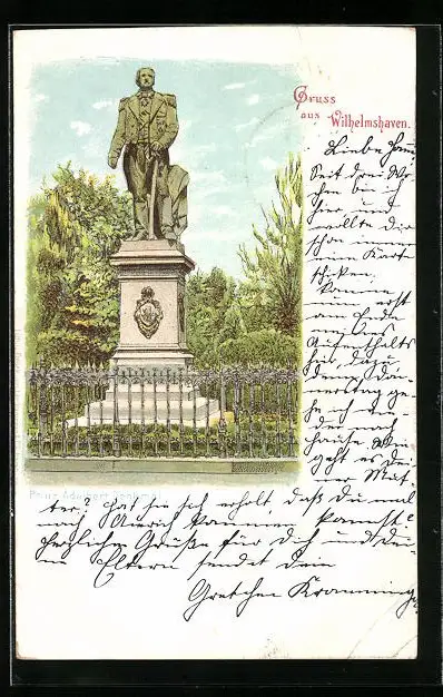 Lithographie Wilhelmshaven, Prinz Adalbert-Denkmal