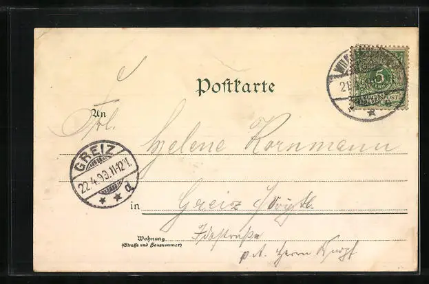 gelaufen 1899, Eckknick re. oben, Knick oben mittig, guter Zustand